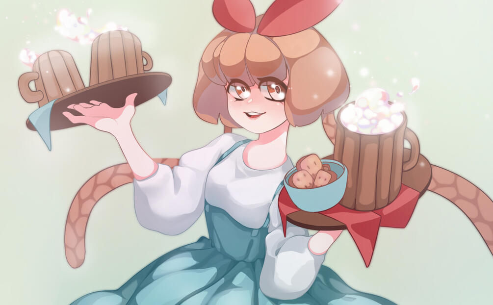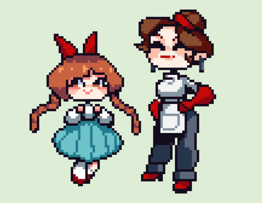 Hello! We are developing the Time Travel cafe game. It is a pixel cafe simulator with alchemy type core mechanic. It will be released on PC in about a year (hopefully).